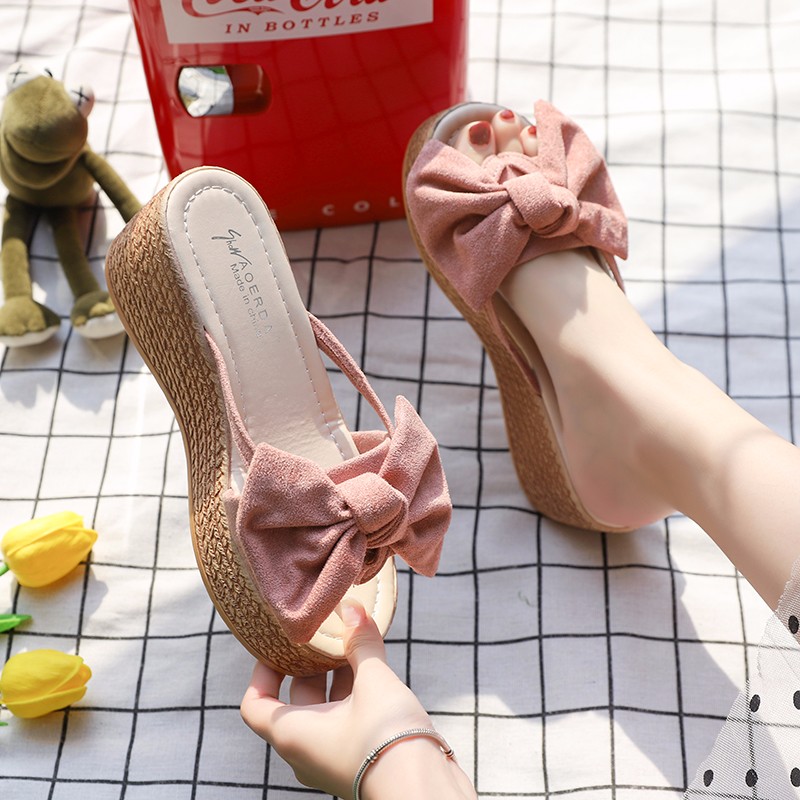 Korean Style Sweet Big Flower Wedge Heel For Women, Balanced Heel-RV369