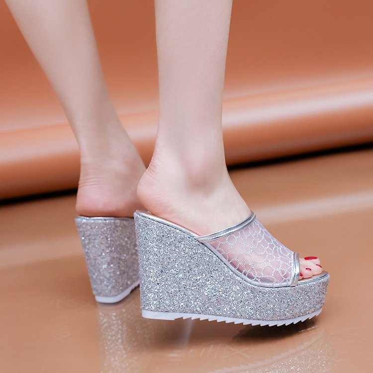 Thick sole, High heel, Mesh flip-flops Shoes For Women, Balanced Heel-RV476