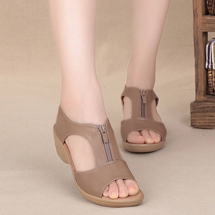 Fishmouth Wedge Sandals Women’s Soft Sole Middle-aged Sandals, Balanced Heel-RV561