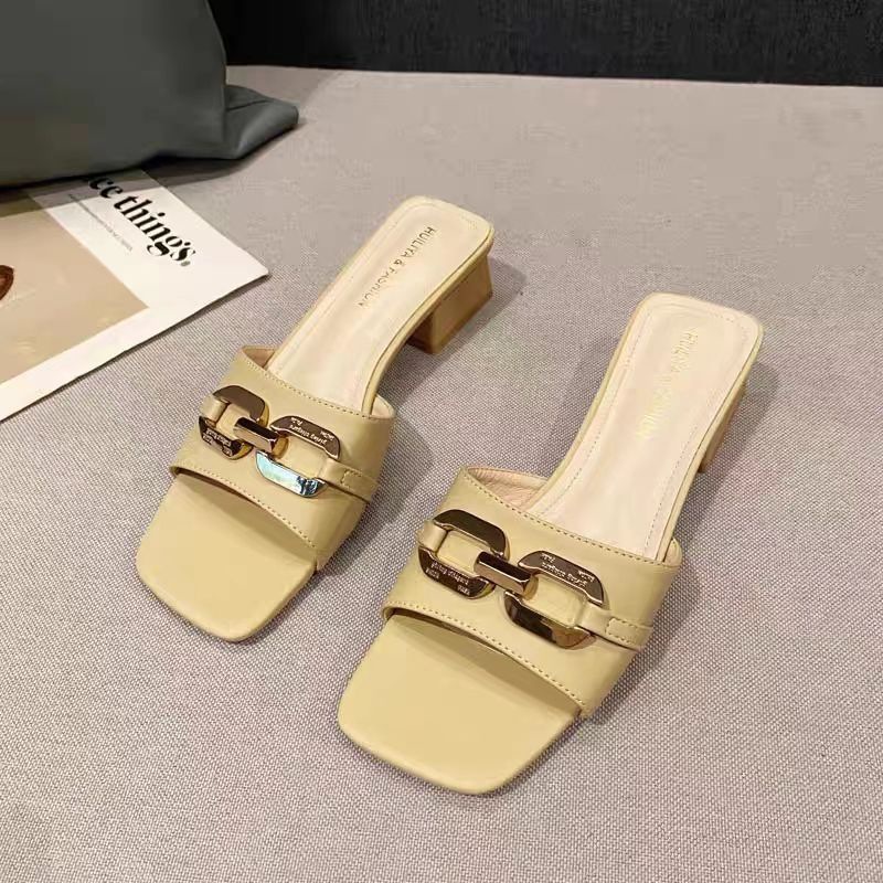 Women’s new slippers summer sandals, casual slippers, breathable chunky heels, Box Heel-RV1342