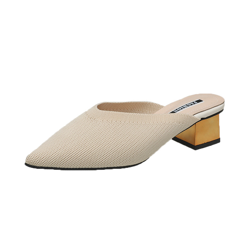 New style Fitting Room Closed-toe Half Slippers For Women, Box heel-RV1316