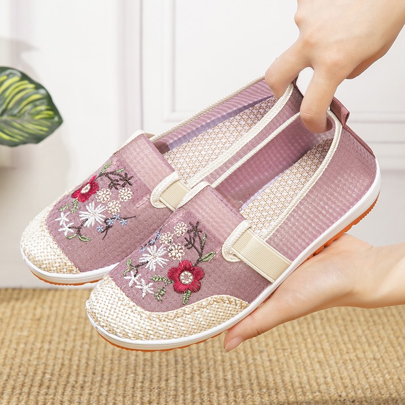 Women’s Old Beijing cloth mesh embroidered slip-on shoes. Canvas-DS89