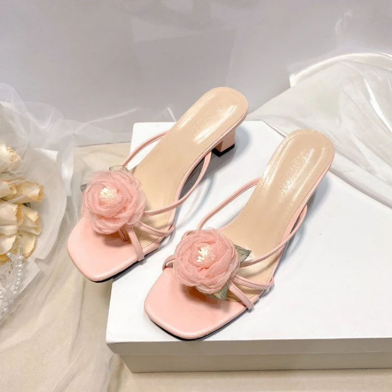 Floral Flip-Flops, Cross-Border Outdoor High Heels, Chunky Heel Women’s Shoes, Box Heel – RV1525