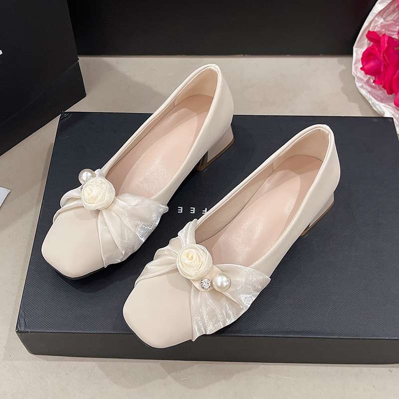 French-style pearl and floral chunky heeled flats for women, Style Shoes – RV2588