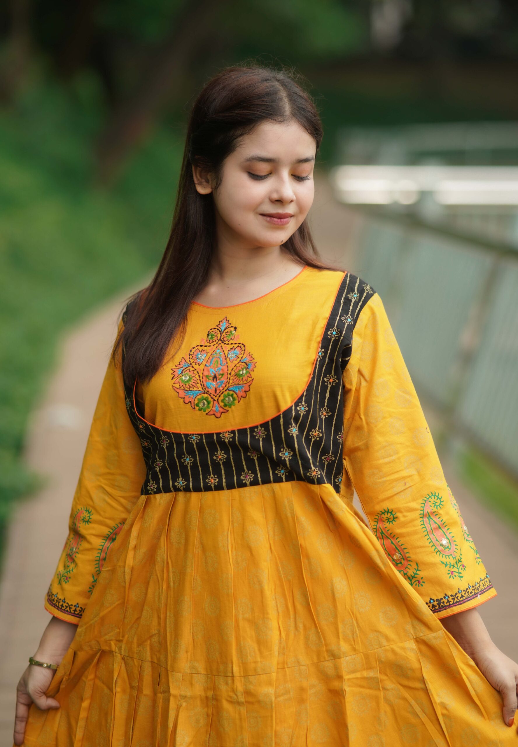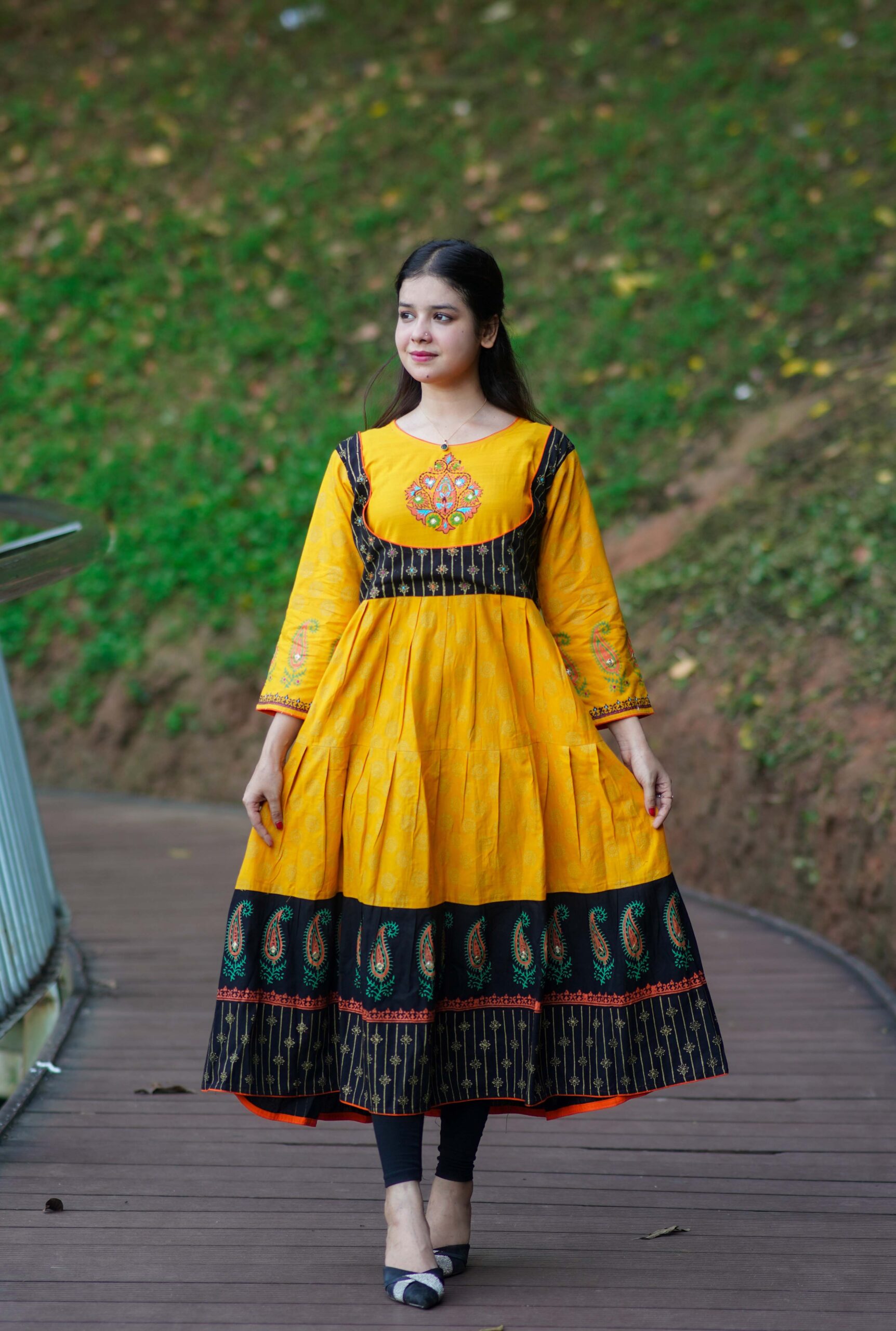 উন্নত মানের কটন ও নান্দনিক স্থায়ী ব্লক প্রিন্ট করা হয়েছে এবং দৈর্ঘ্য ৯০ ইঞ্চি – প্রস্থ ৩৬ ইঞ্চি