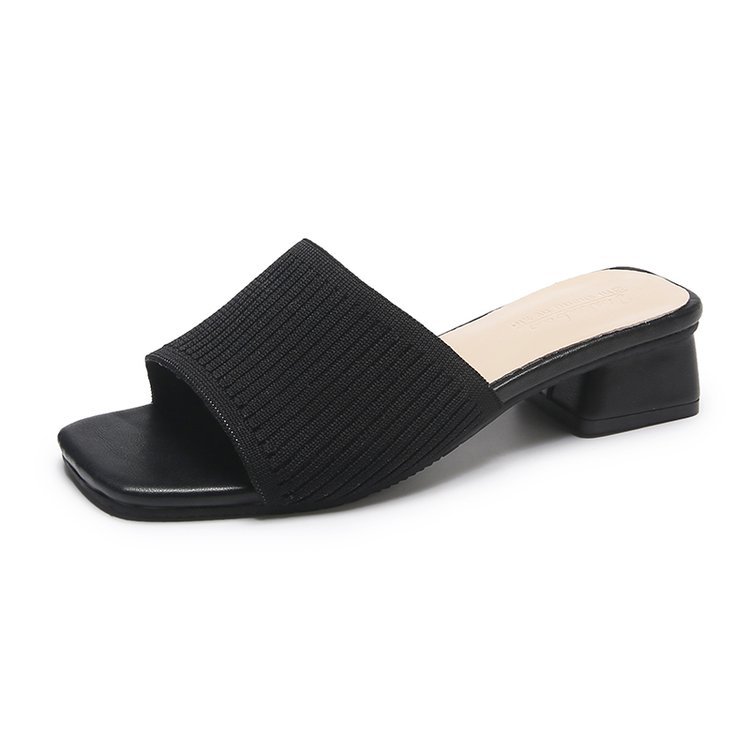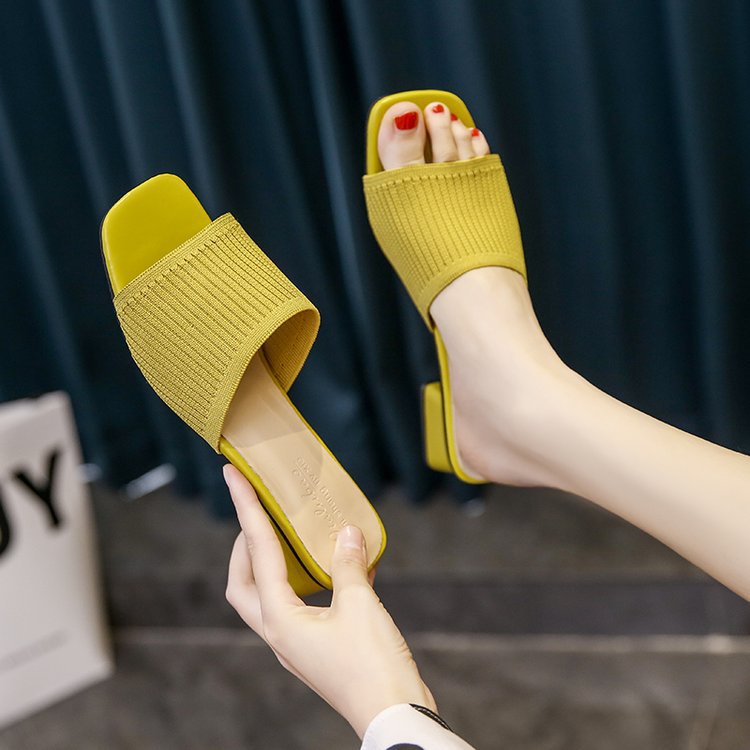 Korean Style Fly Woven Slippers for Women, Box Heel-RV1428