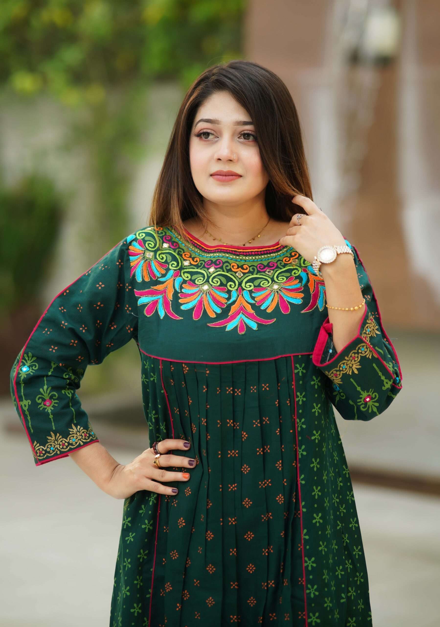 উন্নত মানের কটন ও নান্দনিক স্থায়ী ব্লক প্রিন্ট করা হয়েছে এবং দৈর্ঘ্য ৯০ ইঞ্চি – প্রস্থ ৩৬ ইঞ্চি