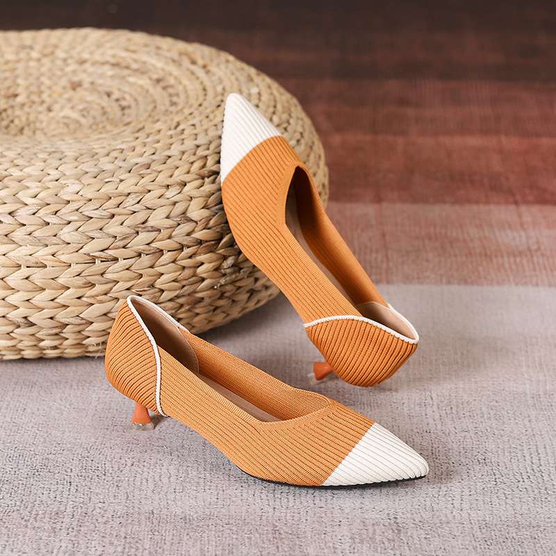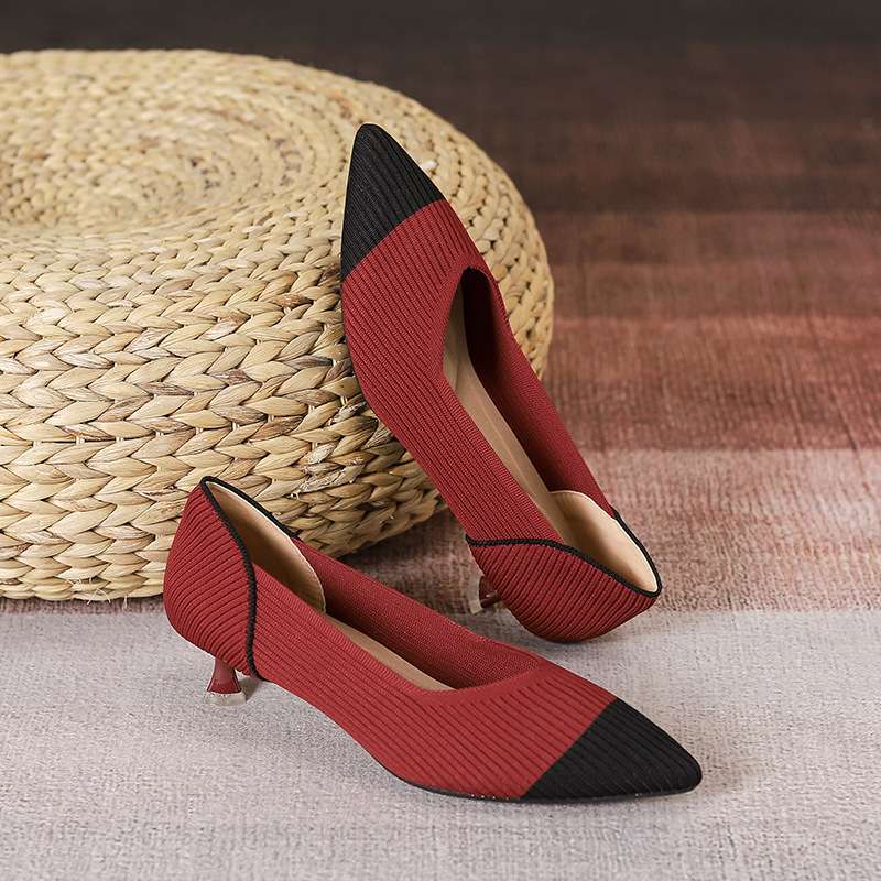 Pointed toe fly-knit soft sole breathable high heel women’s Style Shoes – RV2577