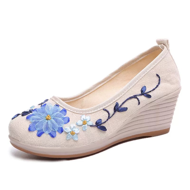 Chinese style linen High-heeled Embroidered Shoes For Women, Style Shoes-RV2067