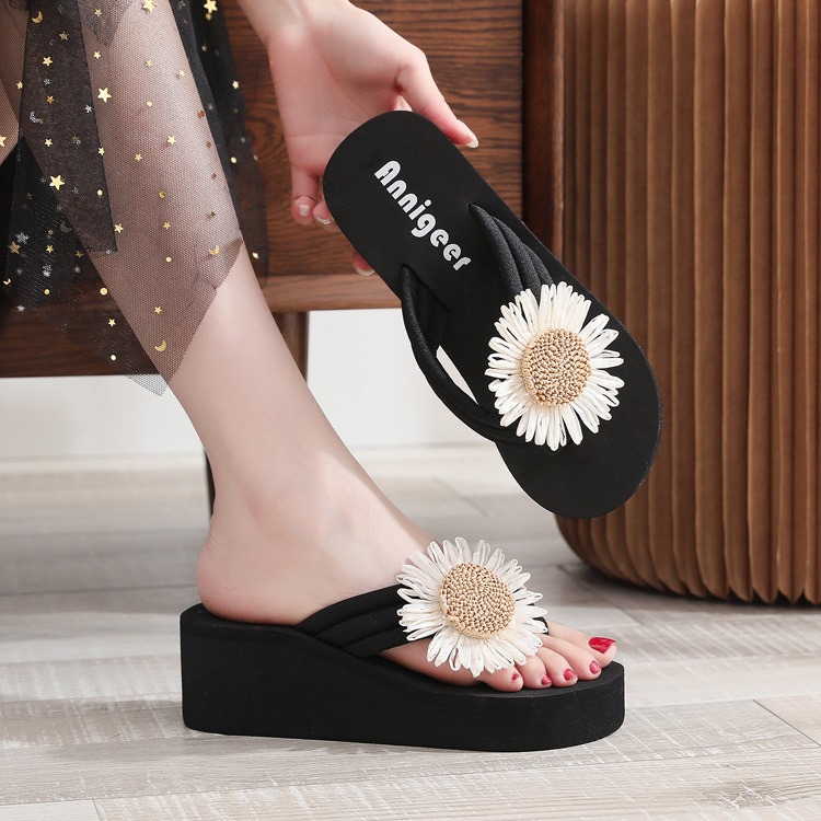 Stylish Floral Wedge Flip-Flops. Comfortable, Non-Slip, Sandal & Slipper-RV207