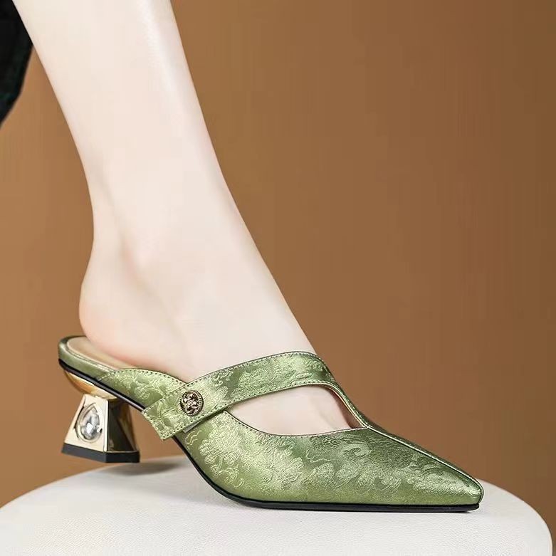 Versatile Comfortable Toe-Cap Half Slippers For Women, Box Heel-RV1418