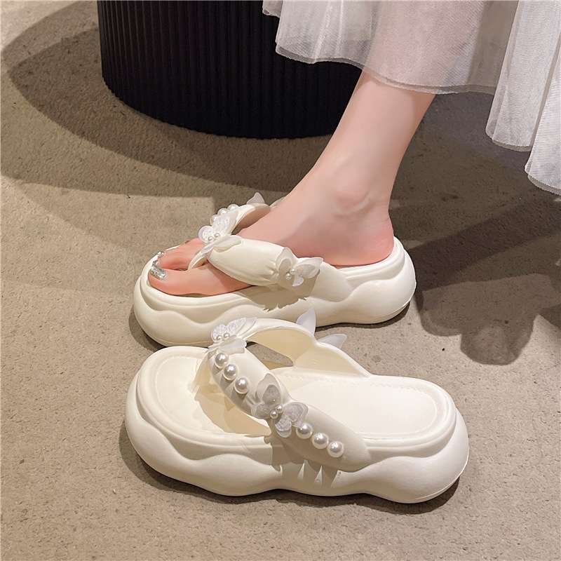 Women’s Chanel-inspired faux pearl butterfly flip-flops, Balanced Heel – RV712