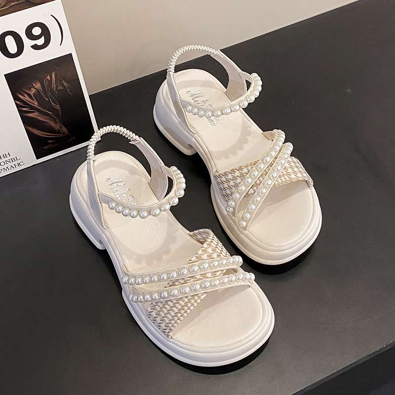 Women’s Chanel-style pearl sandals, Balanced Heel – RV720