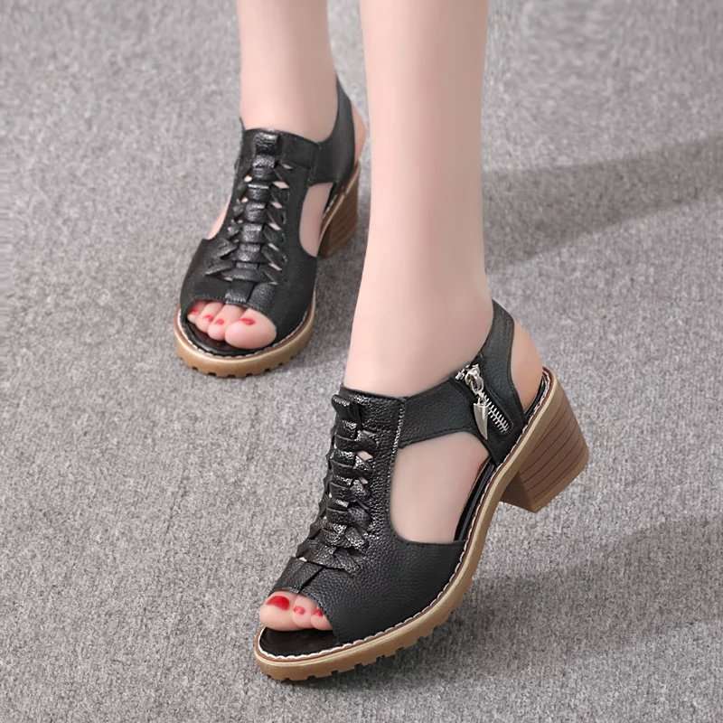 New mid heel versatile Korean style sandals For Women, Box Heel-RV1018